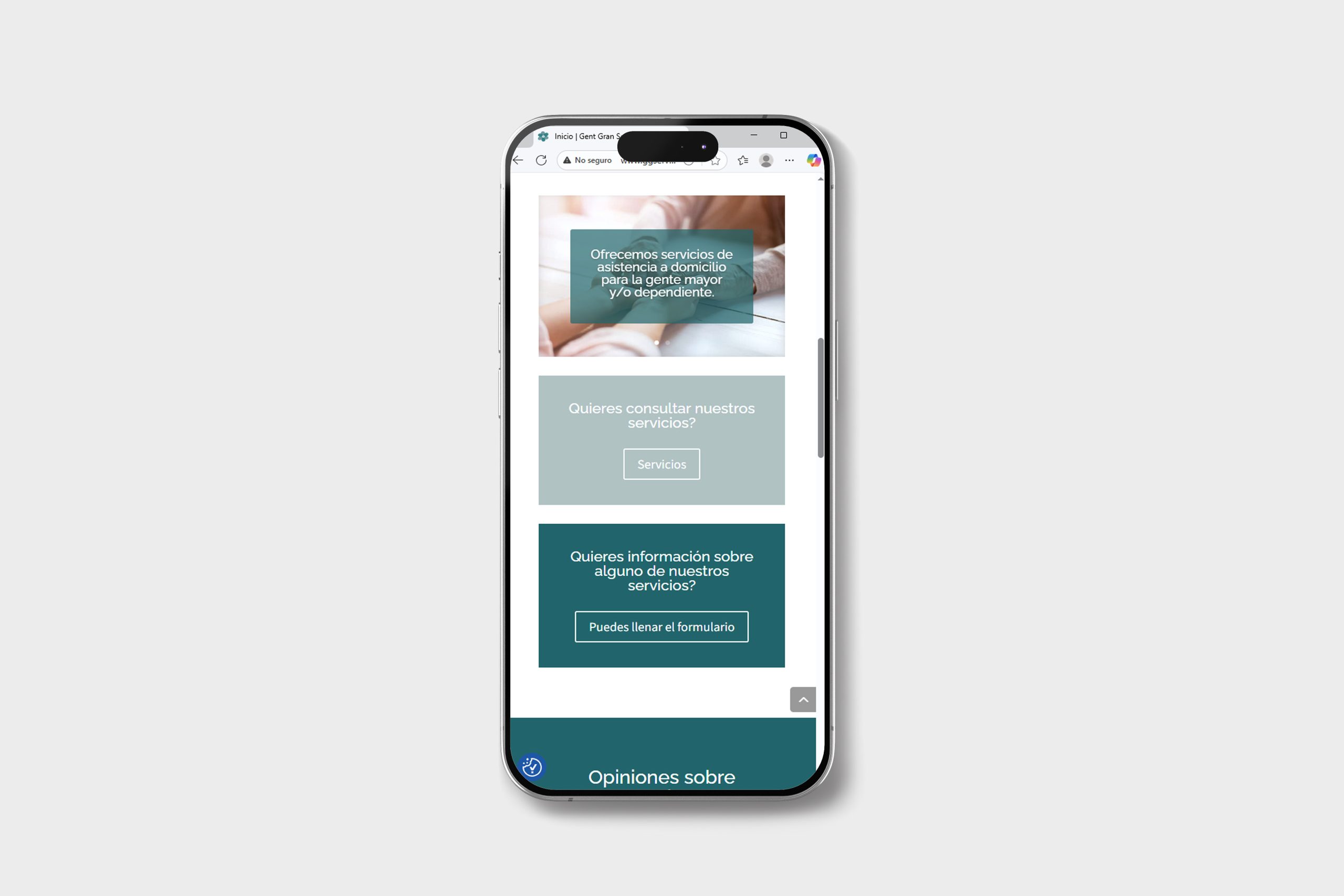Gent Gran Serveis es una empresa especializada en ofrecer atención y servicios integrales para personas mayores, tanto en el hogar como en residencias. La web debía reflejar confianza, cercanía y profesionalidad, manteniendo una comunicación clara y accesible para familias y usuarios.