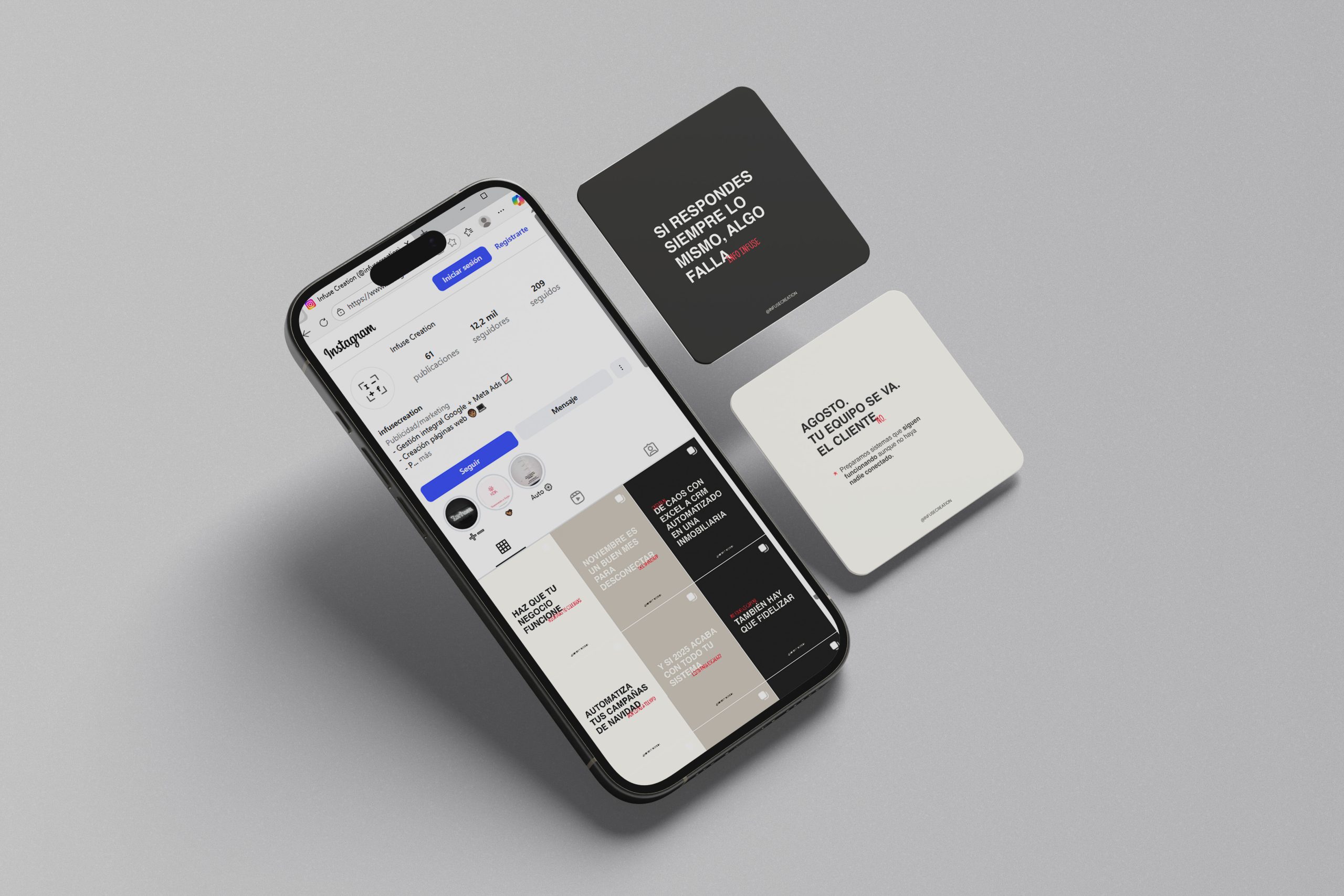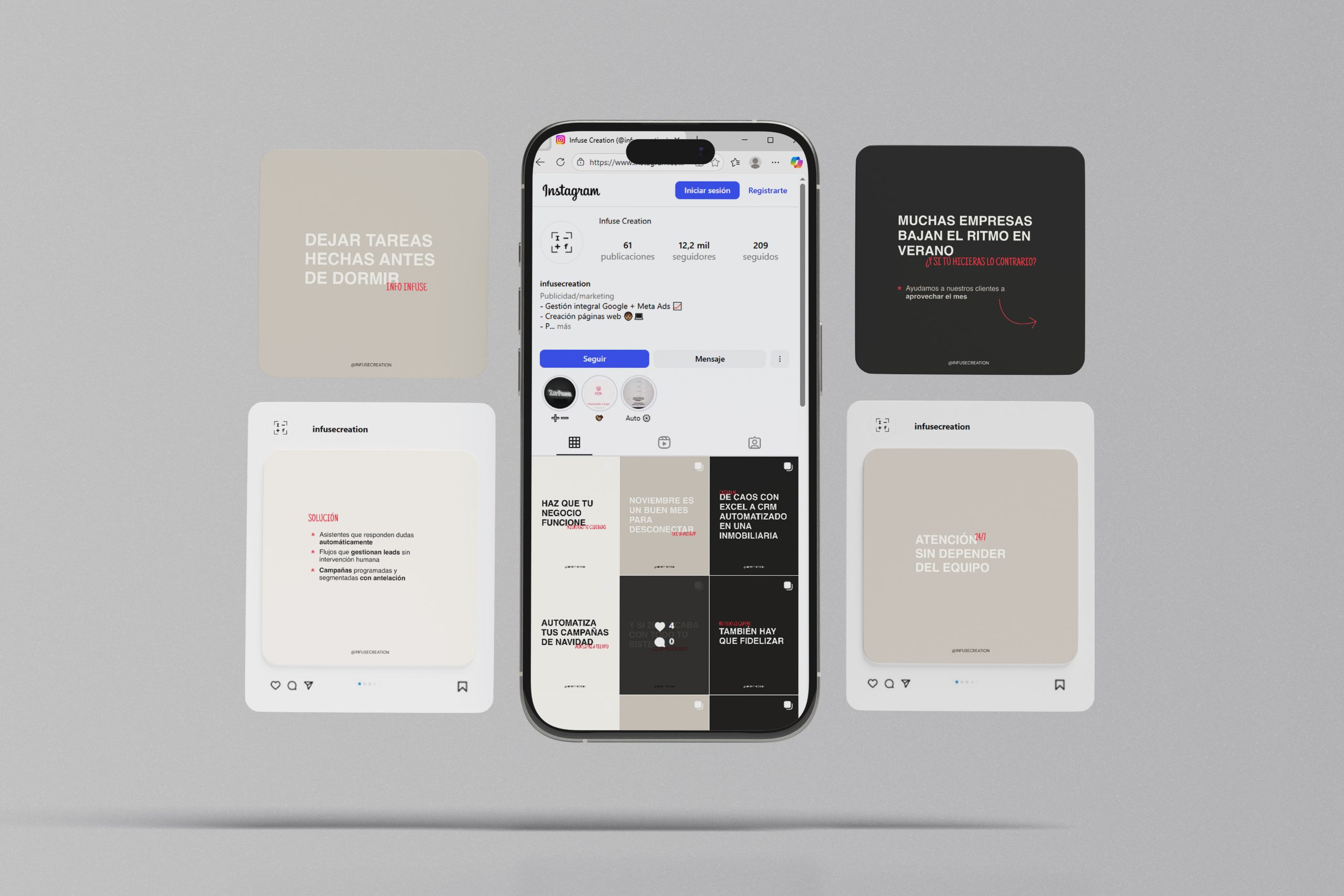 Infuse Creation es un estudio especializado en producción de contenido visual, fotografía, vídeo y branding. Su presencia en redes debía reflejar calidad, estilo y coherencia, mostrando proyectos de forma atractiva y potenciando la conexión con su audiencia creativa.