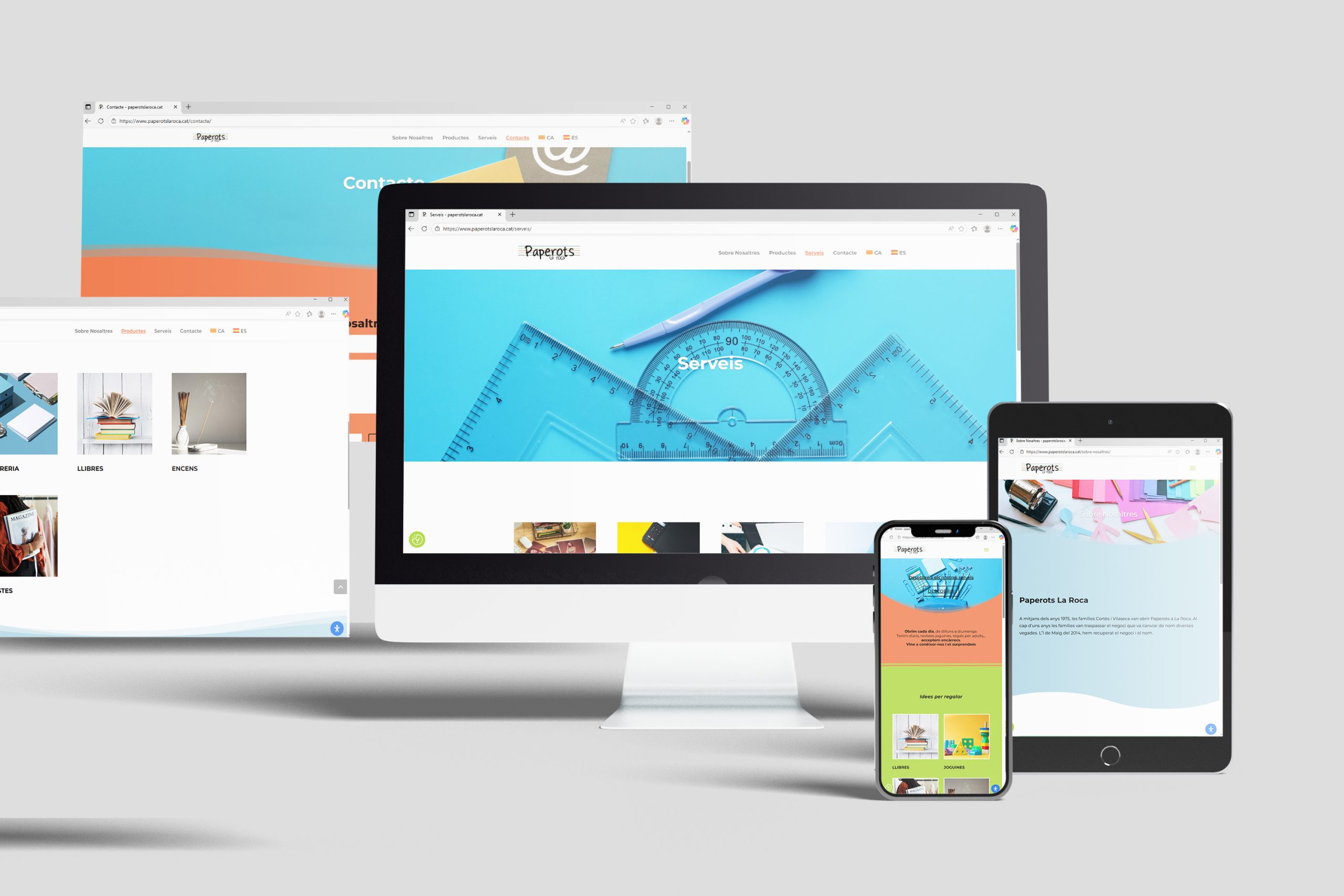 Paperots La Roca es una tienda de papelería y regalos ubicada en La Roca del Vallès, especializada en artículos de oficina, material escolar, detalles personalizados y productos creativos para todas las edades. La web debía reflejar este espíritu cercano y versátil, mostrando un catálogo diverso de forma clara y atractiva.